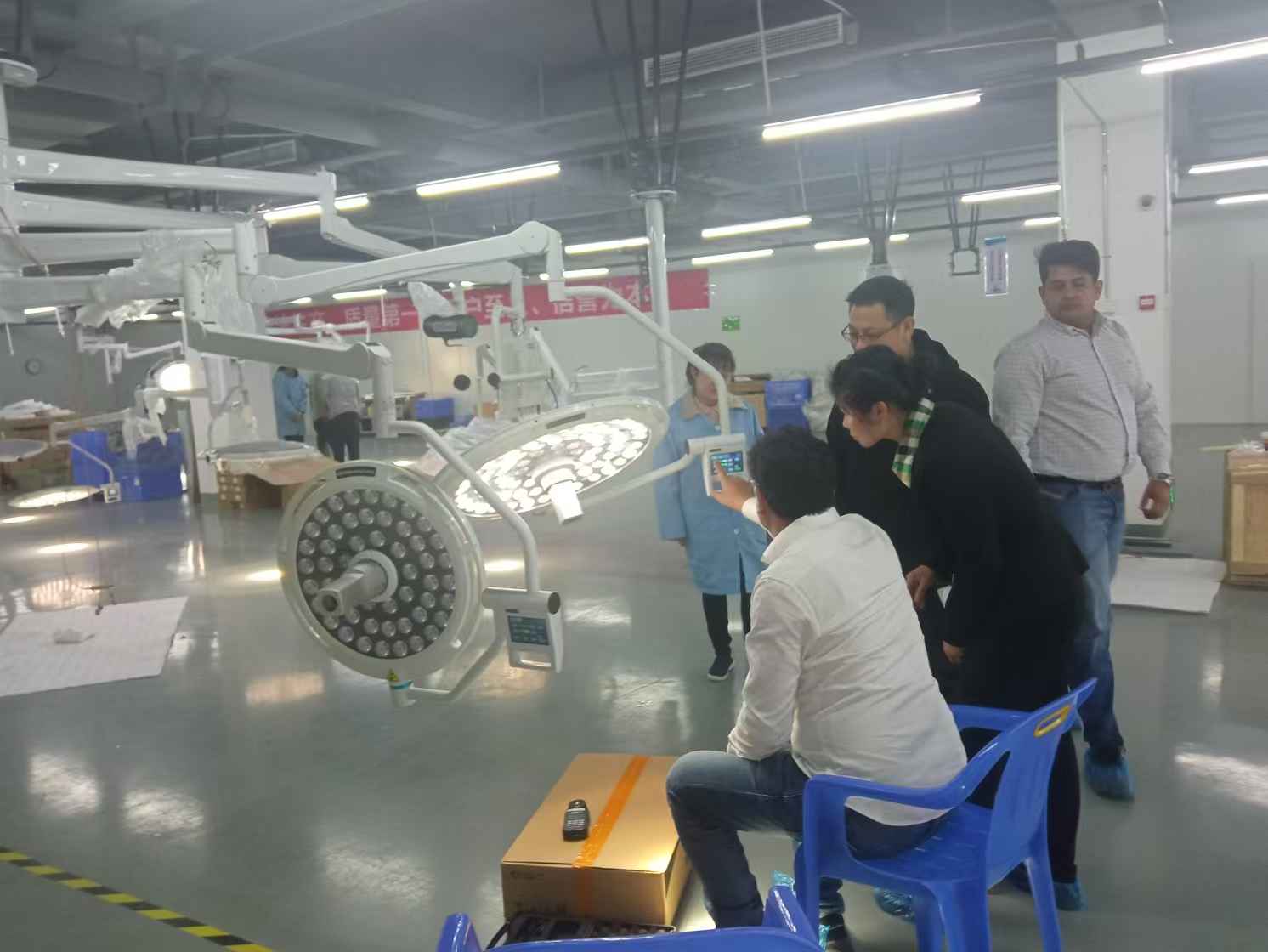 伊拉克客戶通過外貿(mào)銷售經(jīng)理的介紹,對我們的新款多功能花瓣式無影燈產(chǎn)品,產(chǎn)生了濃厚的興趣,當(dāng)即就提出想找機會來廠參觀。
