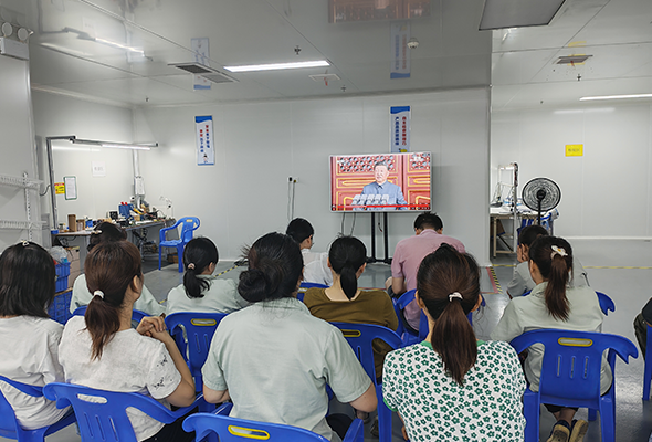 九月的陽(yáng)光透過(guò)車間窗戶,與電視機(jī)屏幕的光芒交織在一起湖南兆豐光電科技有限公司將生產(chǎn)車間化作愛(ài)國(guó)教育的臨時(shí)課堂,組織一線生產(chǎn)員工集體觀看了閱兵儀式的直播盛況。